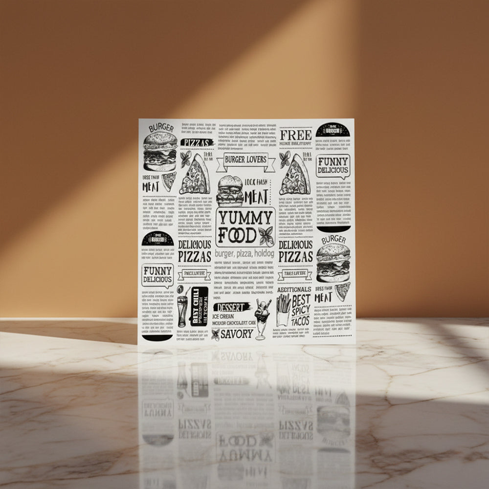 Protect your table surfaces with our Table Mat - 1 or 2 Color (Economy Paper). Designed for restaurants, cafes, hotels, and event organizers in Dubai & UAE, these cost-effective table mats offer reliable protection while providing a great way to showcase your brand. Made from economy paper, these mats offer an affordable solution for businesses that want to keep their tables clean while also promoting their logo or branding with 1 or 2-color printing.